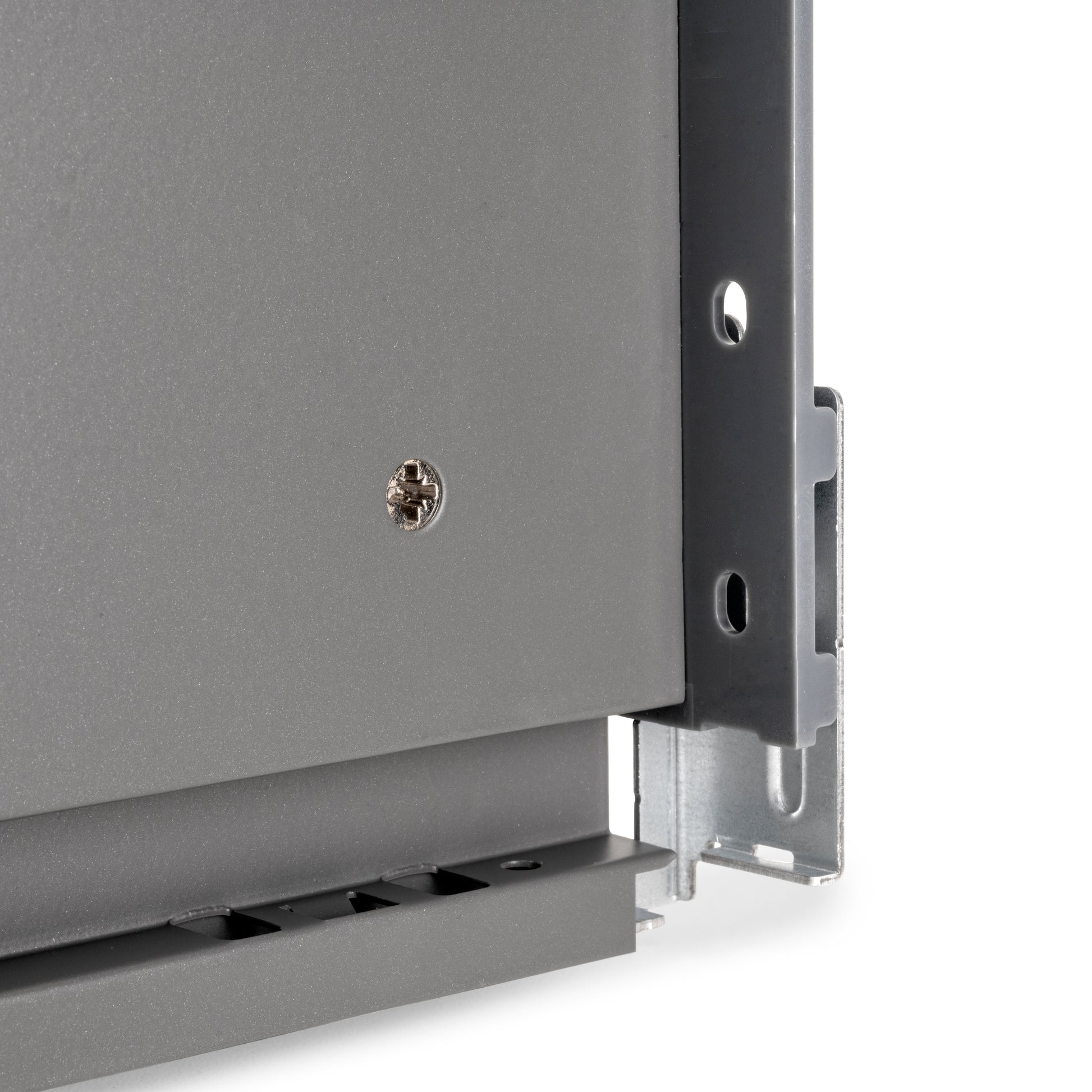 Le sponde laterale in metallo sono realizzate in acciaio con finitura verniciato grigio antracite, ha una regolazione frontale 3D: verticale tramite eccentrici di ±2 mm, orizzontale ±1 mm, inclinazione -1,5/+4 mm. Le guide sono di estrazione totale con chiusura ammortizzata e hanno una capacità di carico massima di 40 Kg per il cassetto.