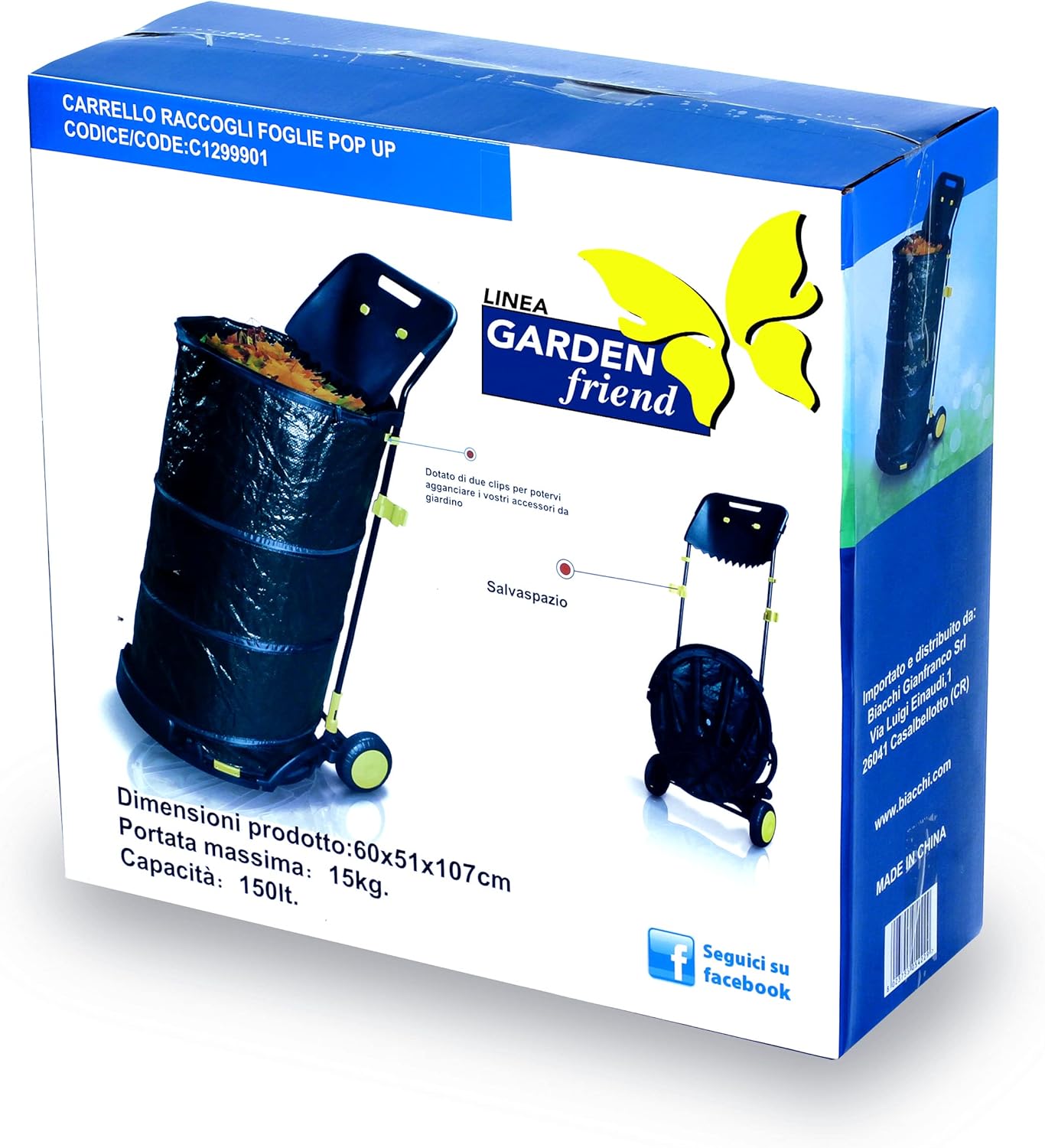 - Materiale: struttura in acciaio verniciato e sacco pop up in polietilene dotato di pratici ganci