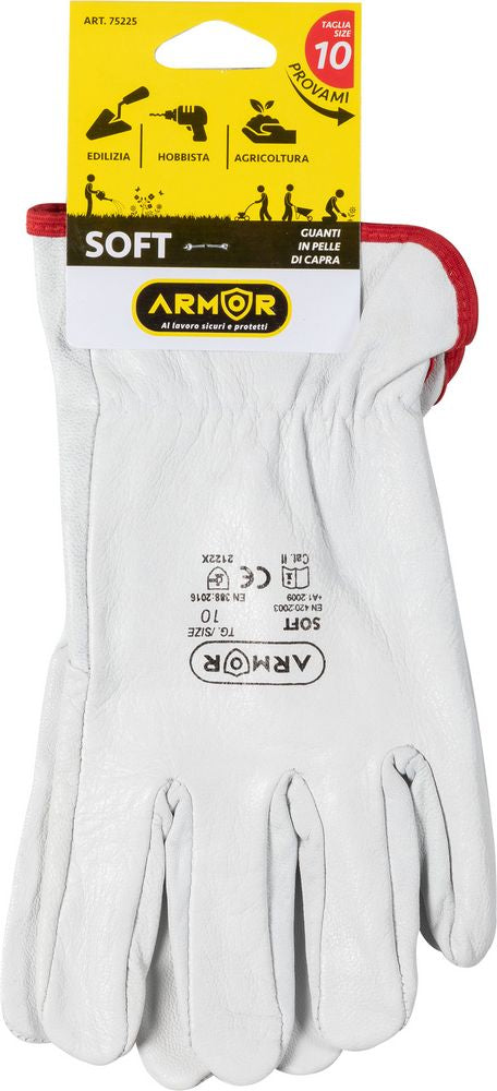 Armor propone i guanti Soft, realizzati in pelle di capra, taglia 10.Ideali per agricoltura ed edilizia risultano impermeabili.