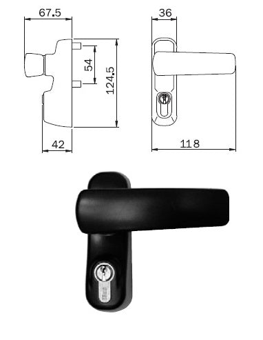ISEO 94021005 MANIGLIA EST.C/CILINDRO XANTIP. NERA REVERS.