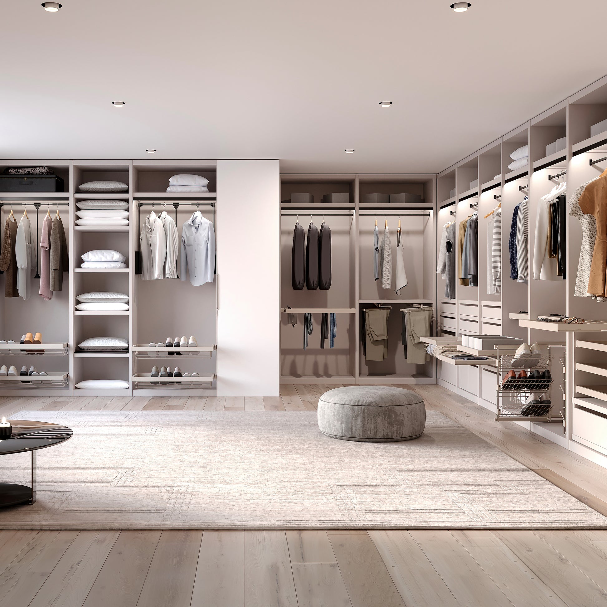 Raggiunge un più comodo stoccaggio dei vestiti grazie alle sue guide di chiusura morbide e all'estrazione partiale, che permettono al telaio di aprirsi e chiudersi lentamente e silenziosamente per evitare urti, con pezzi di abbellimento per nascondere le guide. È la soluzione perfetta da assemblare insieme al telaio estraibile Hack e fare combinazioni con i diversi accessori. È disponibile per moduli da 600, 800 e 900 mm.