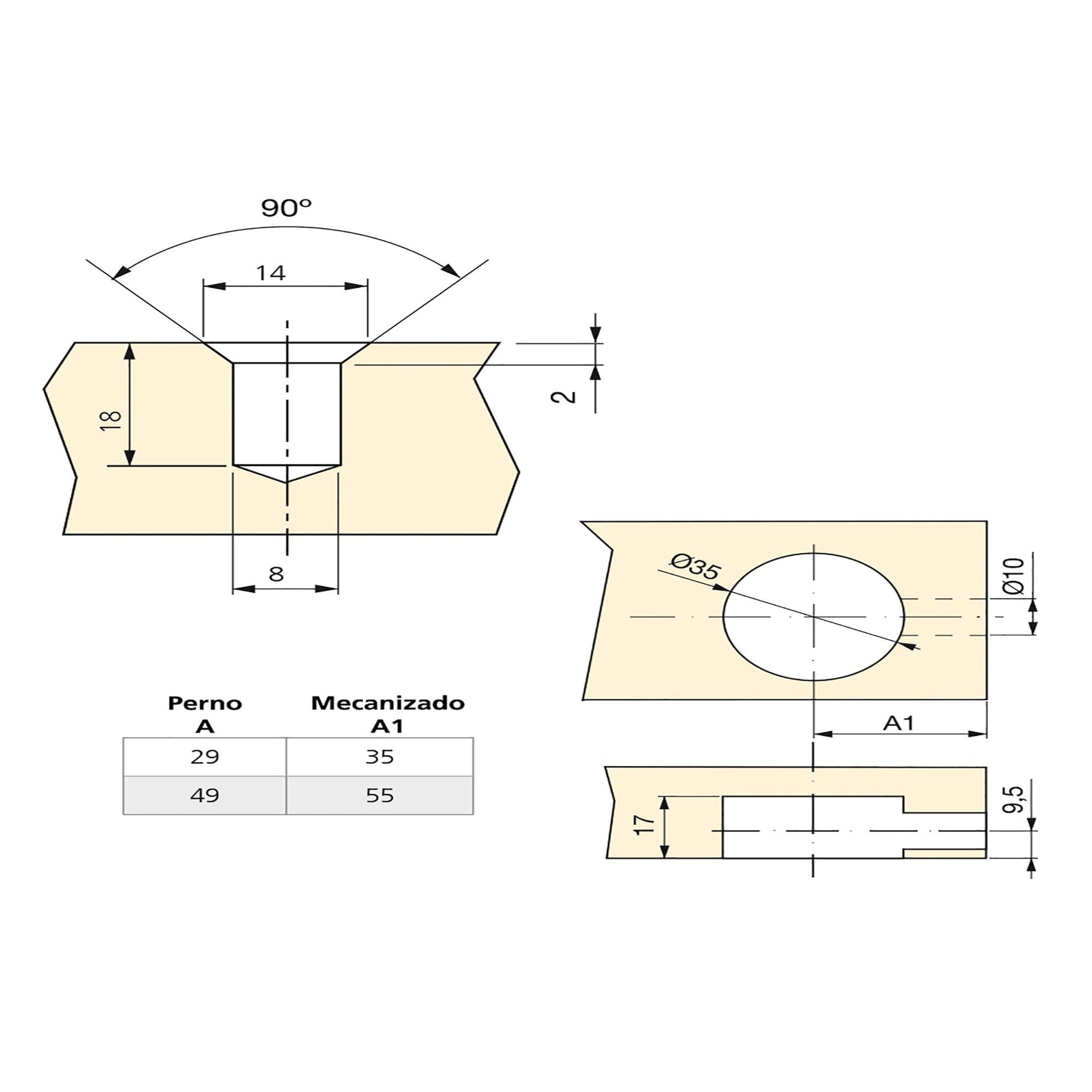Sistema di unione per i mobili, struttura dell'armadio ed unione di letti o tavoli. Noti per un fissaggio forte ed efficace e per unioni affidabili, fornendo un fissaggio smontabile. Sono ideali per spessori di pannello da 20 mm visto che per il montaggio è necessario fare un foro nel pannello affinchè rimanga incassato. L'eccentrico dispone di un diametro da 35 mm, inoltre di una bussola e perno con filetto M8. L'unione di questo sistema crea un sostegno solido e resistente restando nascosto grazie al tappo di copertura estetico che inoltre blocca l'eccentrico evitando che si allenti