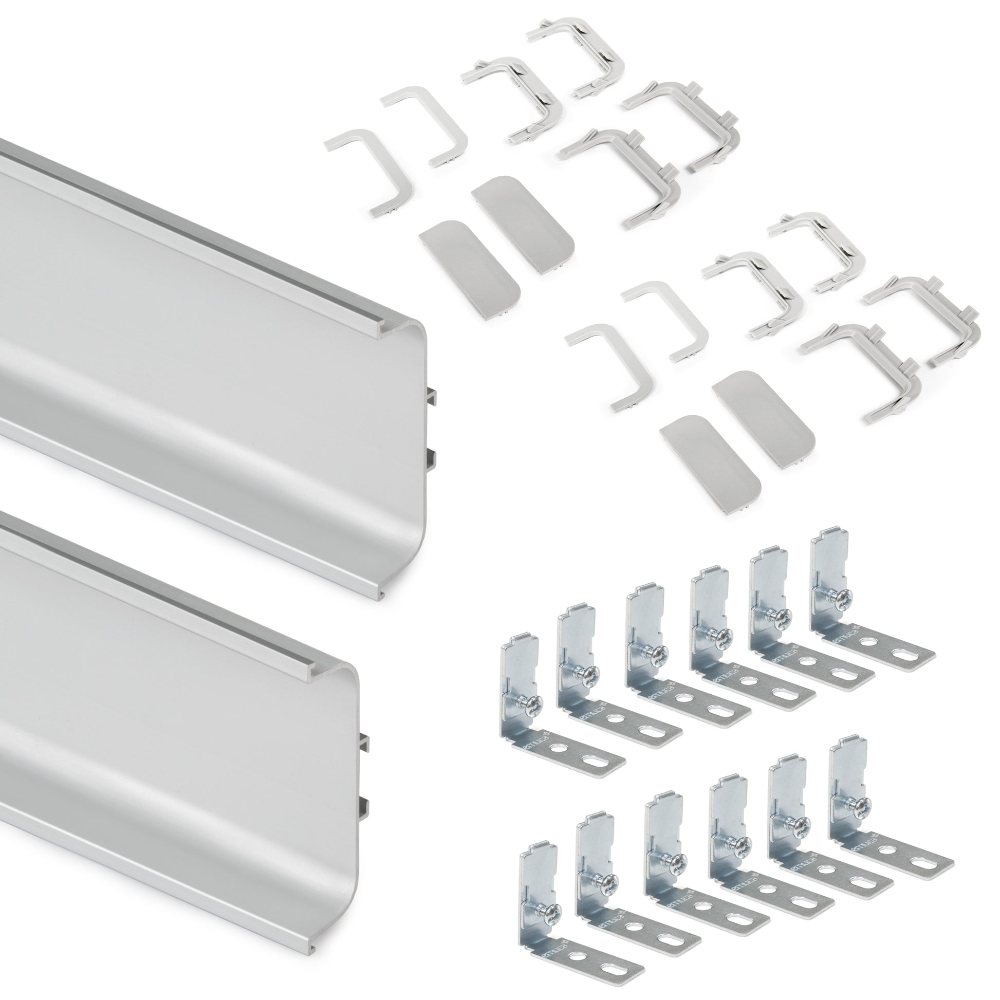 Kit di profili Gola per frontali di modulo senza maniglia. Il kit è composto da tutti gli accessori necessari per effettuare il montaggio, costituito da 2 profili Gola da 2.350 mm, 2 set di coperture e 12 staffe con viti ad espansione.