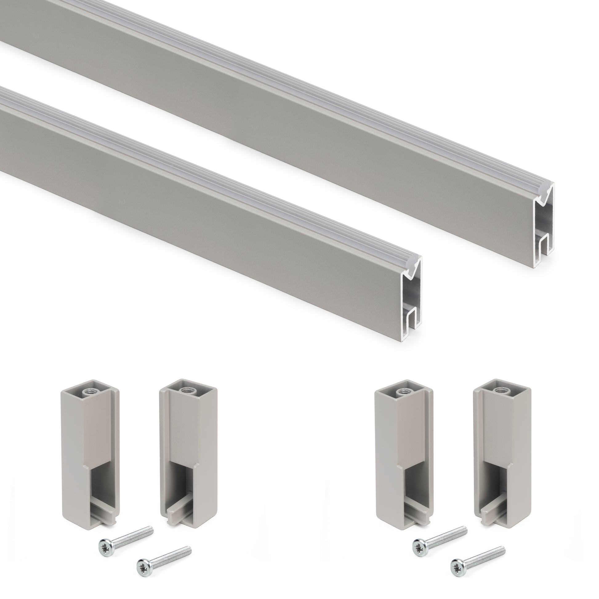 Il kit include tutto il necessario per il montaggio di due tubi per armadio Luxe: il tubo, i reggitubi laterali, e le viti M6 per il montaggio. Il tubo è dotato di una guarnizione in gomma per evitare il rumore delle grucce.