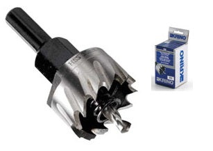 Fresa tazza acciaio HSS-G interamente rettificata con denti e taglio laterale per miglior scarico dei trucioli - Altezza totale mm 23 - Ideale per forare lamiere in acciaio, ferro, leghe leggere e tutti i materiali metallici e plastica dura - Complet