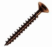 Testa svasata piana - Taglio PZ - Trattamento galvanico bronzatura - Trattamento lubrificazione Lubex - Utilizzo fissaggio ferramenta bronzata su truciolato e legno naturale
