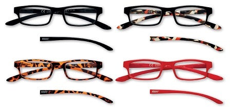 Assortimento in set di 4 occhiali da lettura, 1 pezzo per ciascuna delle 4 finiture - Tutti con la stessa diottria - Conforme alla normativa EN 14139/2010